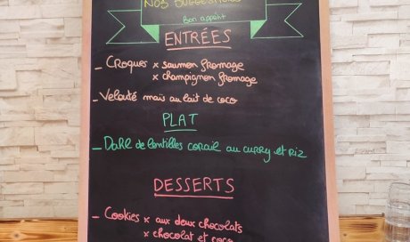 Soupe: carottes, curcuma Croques: Jambon,béchamel, emmental Tomates confites, basilic, bûche de chèvre Plat: Blanquette de soja et riz (végétalien)...