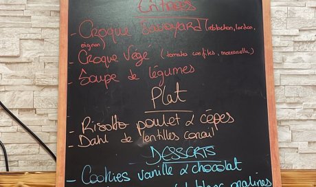 Soupe: velouté de chou fleur Croques: Emmental, champignons et bechamel Emmental, jambon et béchamel Plats: Veau marengo et purée Risot...