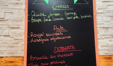 Smoothie banane, pastèque, abricot Quiche chèvre, épinard, noisette Fondant au chocolat Gâteau citron, amende Panna Cotta menthe chocolat, couils ch...